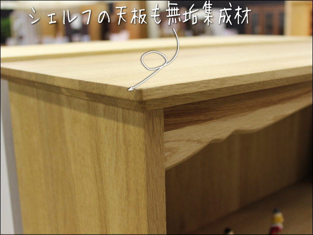 シェルフの天板はオークの無垢集成材を使用しています。