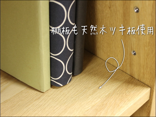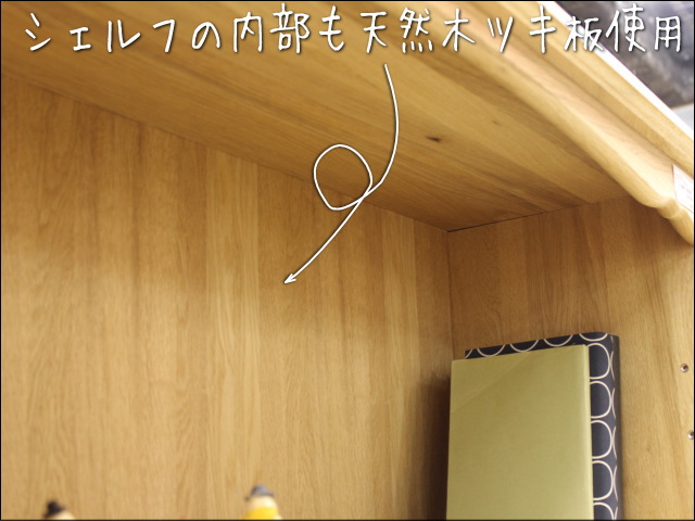 シェルフは内部にもオーク材つき板を使用しています。