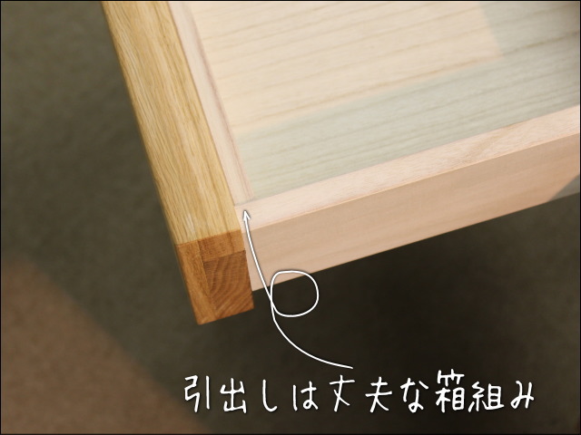 引出しは壊れにくい箱組みにしています。