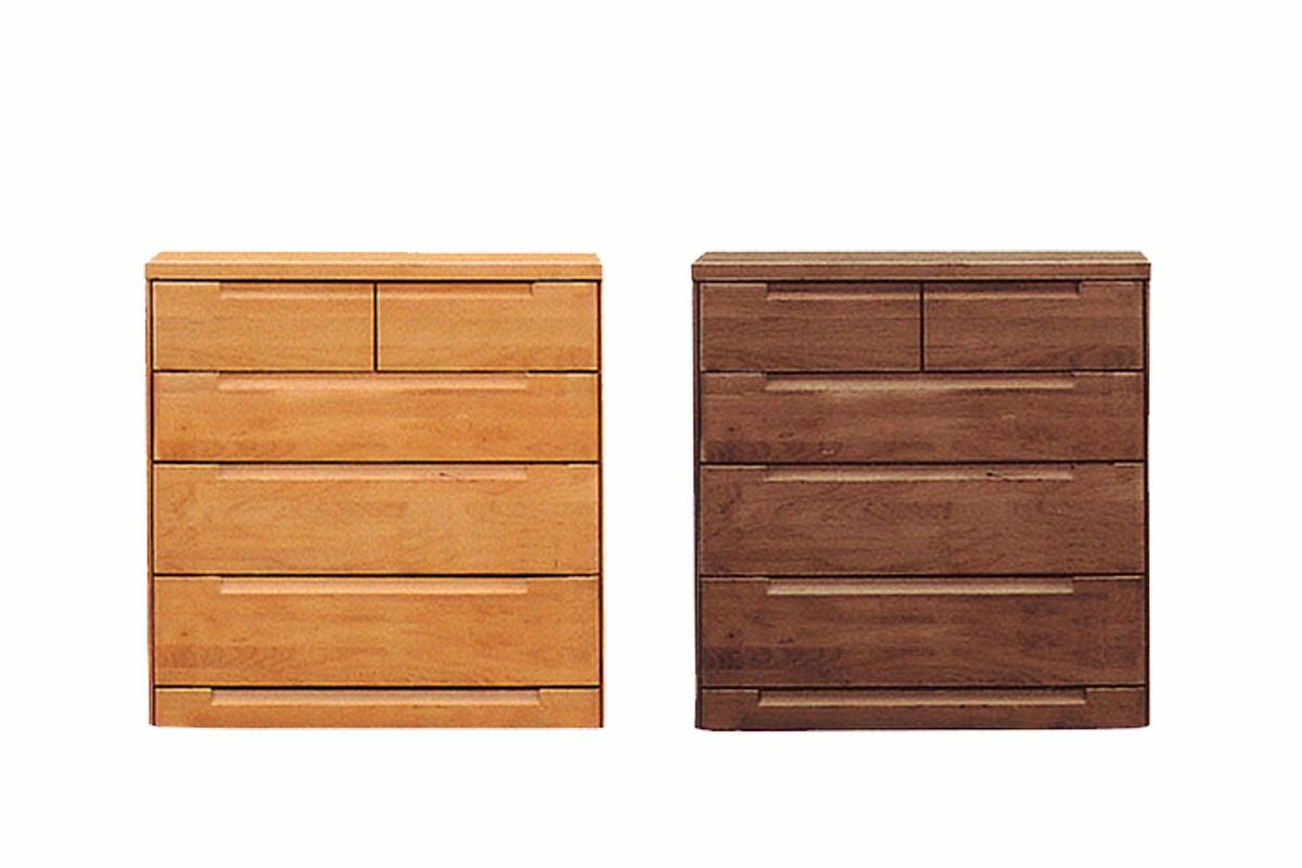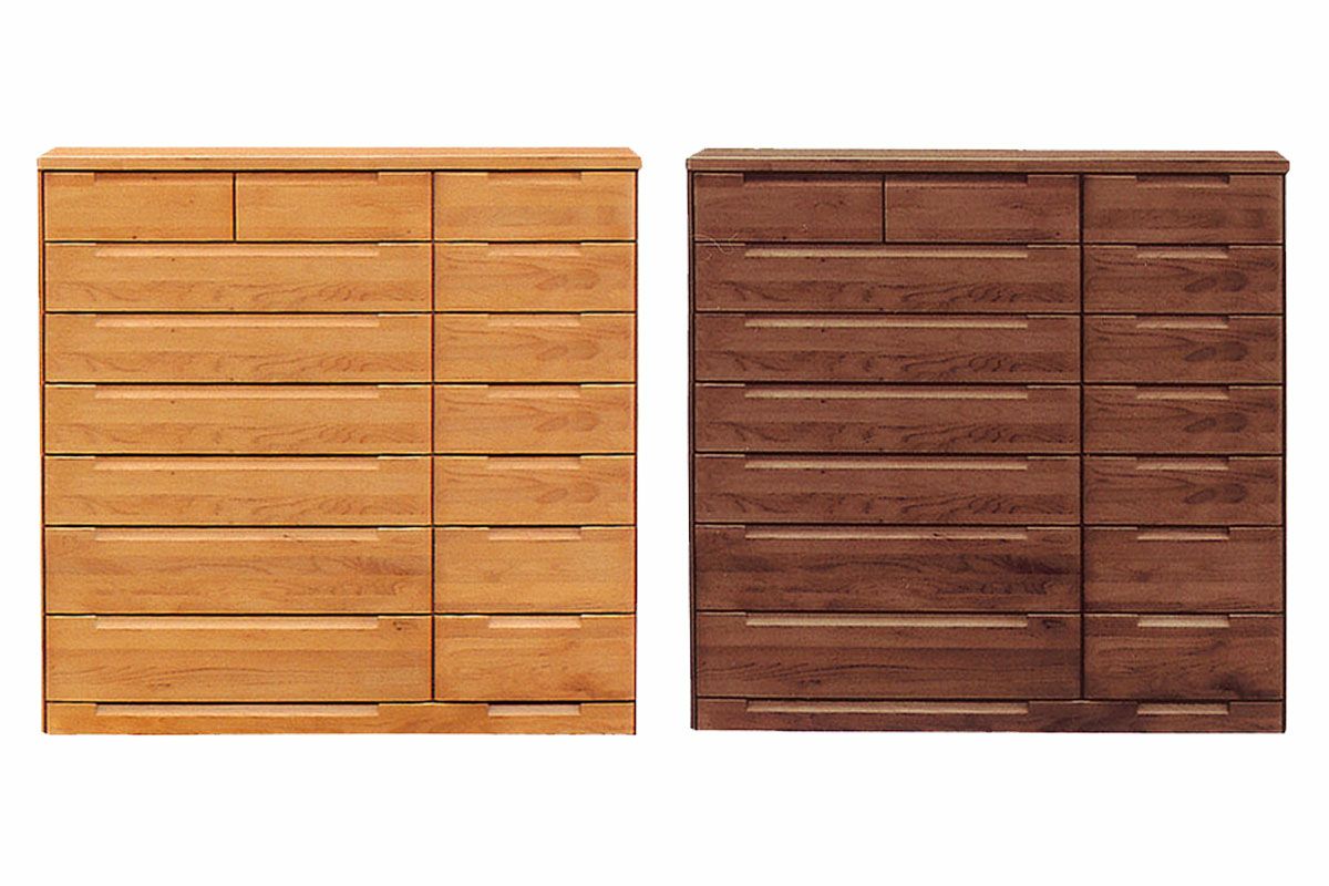同じシリーズで奥行きはどちらも45センチ前後。できたら、引き出しの上部または、つまみで引き出せると、車椅子でも下の引き出しを開けやすい。
