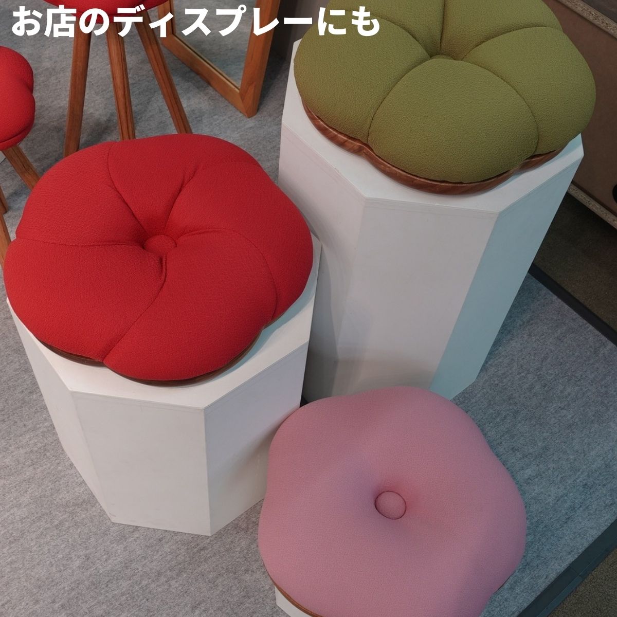 ・日本の花を和菓子の最中風にした柔らかい雰囲気の座椅子