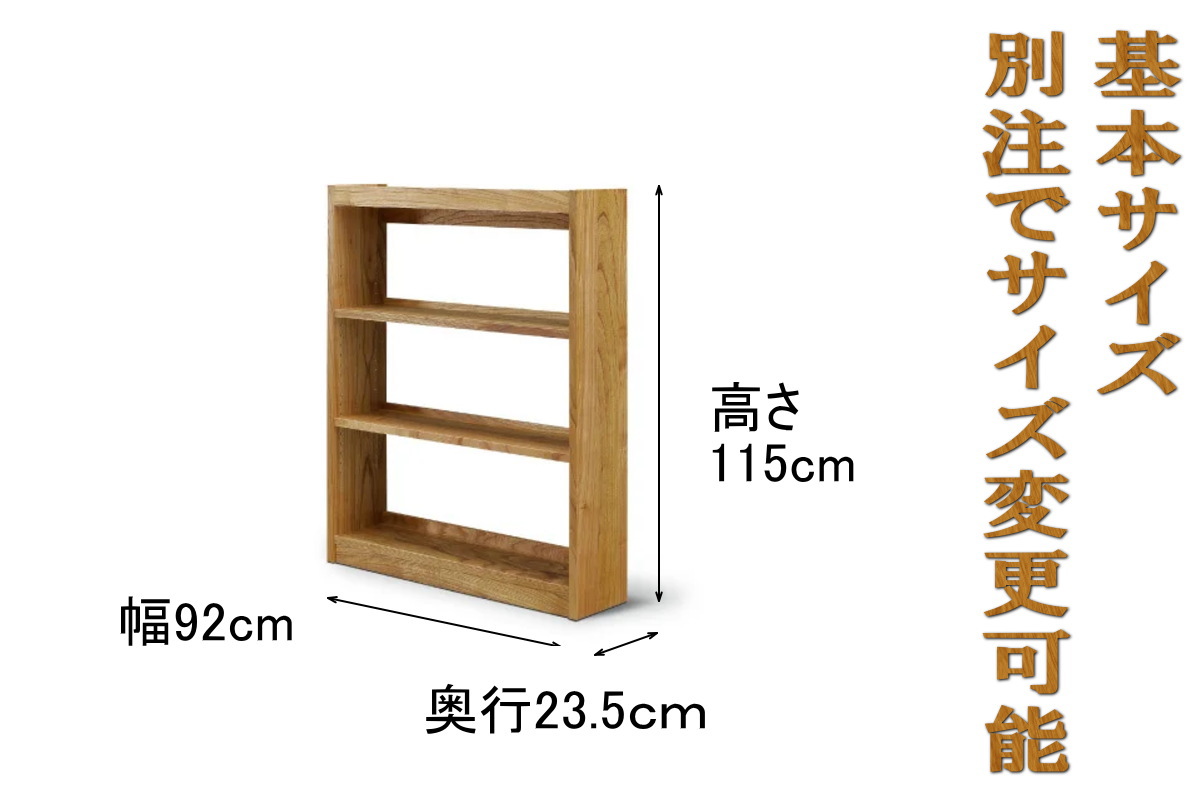 3. 【幅92 奥行23.5 高さ115サイズ変更可能】熊本県産センダン無垢材フリーシェルフ(本棚)A型90ロータイプ