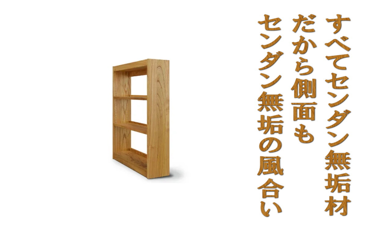 この本棚は背板以外はすべてセンダン材の無垢材を使用しています。