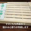 まずお伝えしたいのは、九州産杉100%無垢材の贅沢さ。 寝室に入った瞬間ふわっと広がる杉の香りは、まるで森林浴をしているかのよう。 科学的にも、杉が放つフィトンチッドという香り成分には、リラックス効果や睡眠の質を高める作用があると報告されています。 「眠るたびに森林浴」——そんな贅沢な毎晩を叶えてくれるんです。