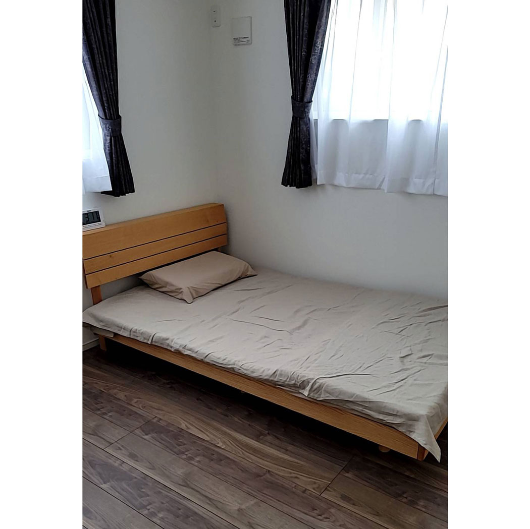 レッドオーク材で制作したシンプルデザインのベッドフレームです。