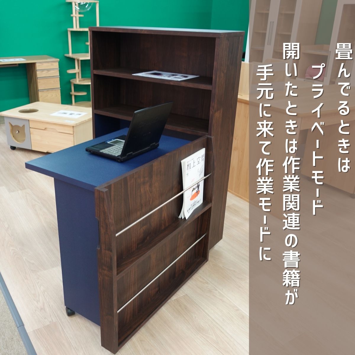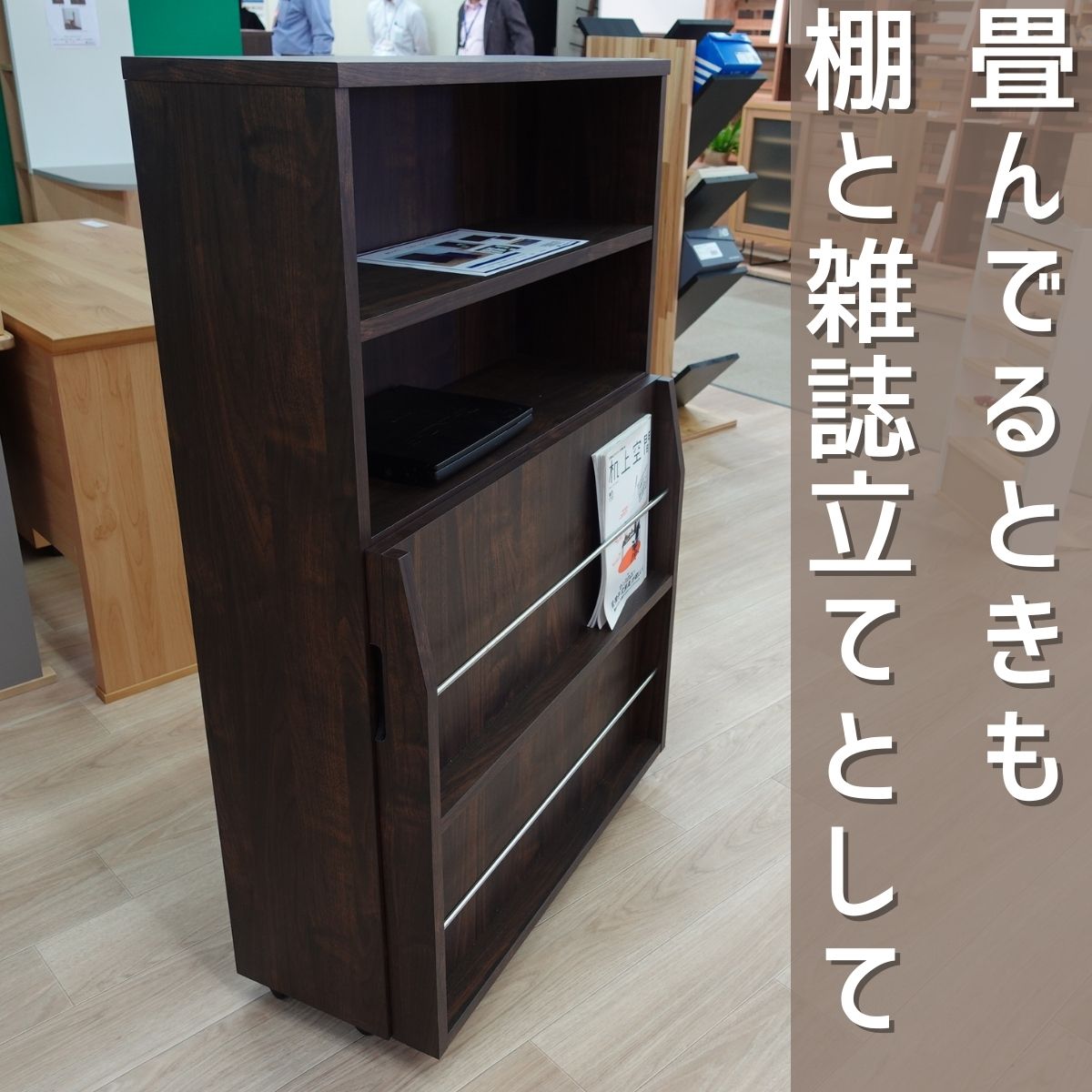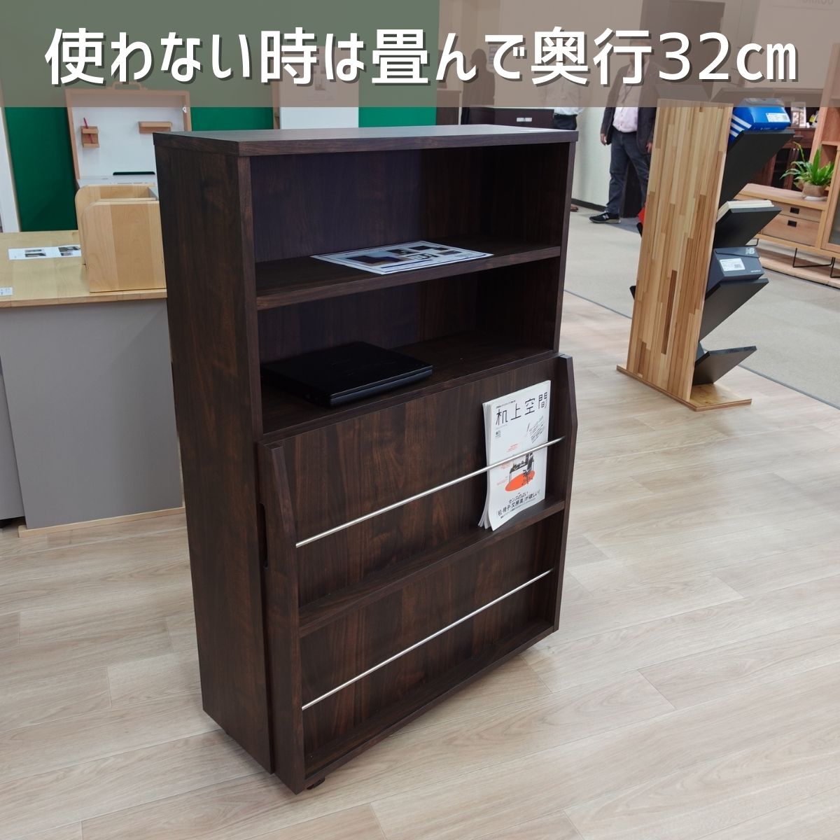 この状態の時でも書籍を棚に収納したり、雑誌立てが前面に来て収納できます。