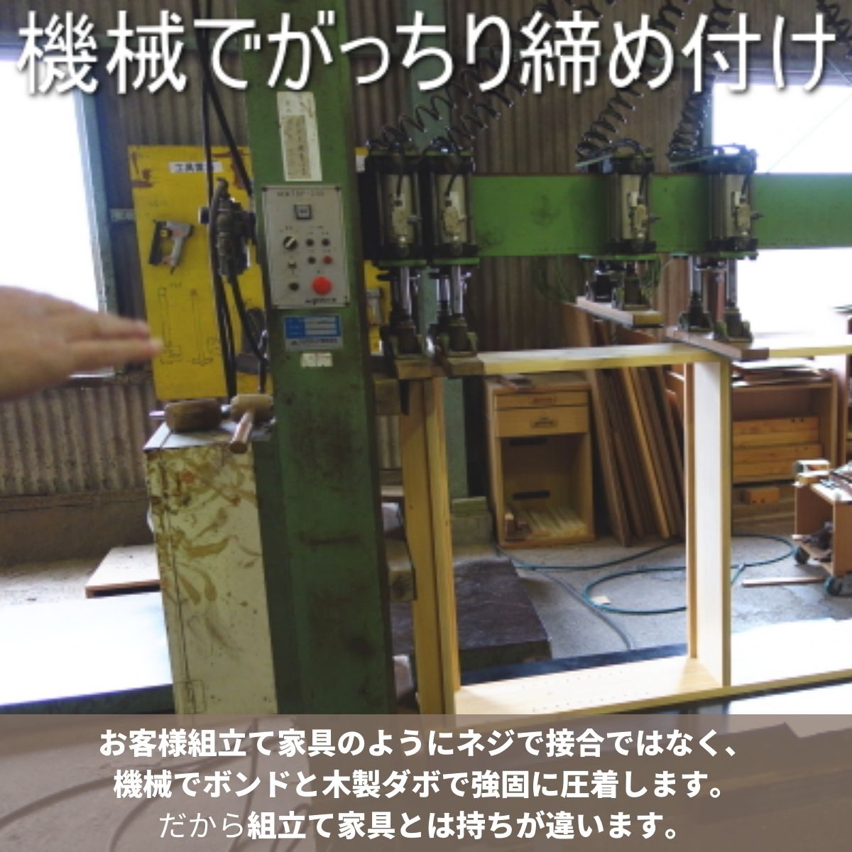 お客様組み立ての家具は通常ネジ留めと思いますが、ネジ留めの場合ネジの部分に力が集中するので、