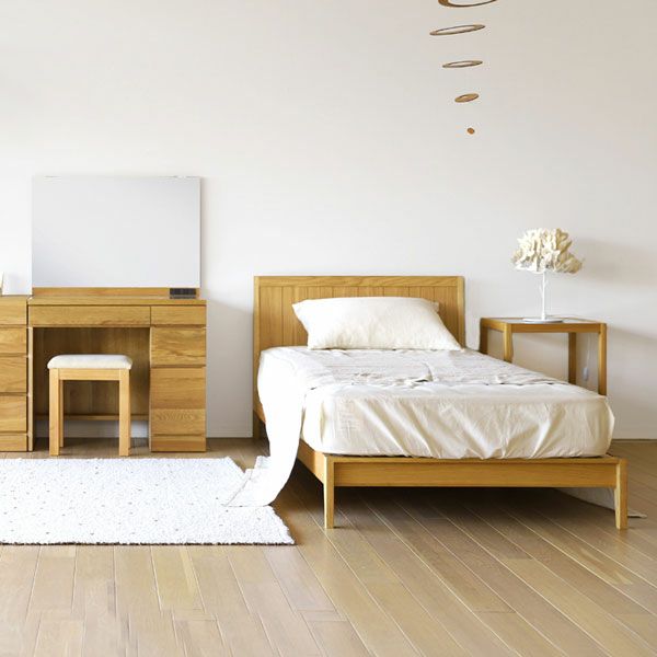 天然の無垢材を使用し、自分好みのレイアウトとインテリアで書斎兼寝室をカスタマイズしてみませんか。鏡やデスクはダイニングテーブル兼デスクとしてもお使いできるシンプルなオーダー(セミオーダー)が可能な物もございます。温かみのある上質のお部屋作りが可能です。