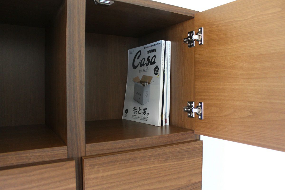 テーブルの天板やキャビネットで裏側も化粧仕上げをし、背面が見えてもおかしくない商品。