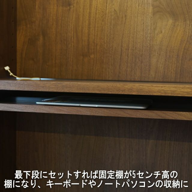 奥行の内寸が45cm以上ある食器棚。ヘルシオなど奥行があるスチームオーブンも置けるタイプです(オーブンレンジのサイズはご自身でご確認ください)
