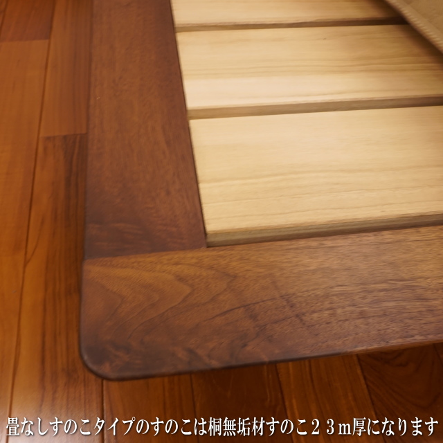 すのこ仕様の場合、すのこは桐無垢材23ミリ厚のすのこになります。