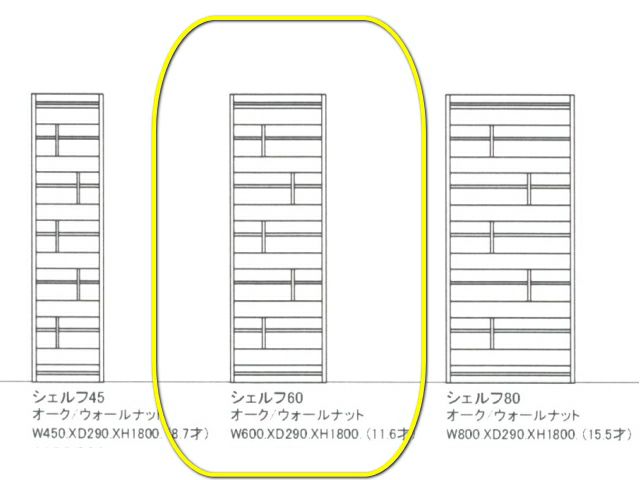 シェルフ幅が45センチ、60センチ、80センチから選べる