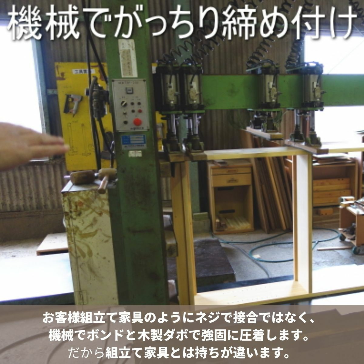 | 国内で伐採された木材を使用した家具。杉やヒノキが中心で、山林は適切な管理をしないと洪水や山崩れの原因となります。国産材を積極的に使うことにより山の管理が適切に行われるようになります。 | |