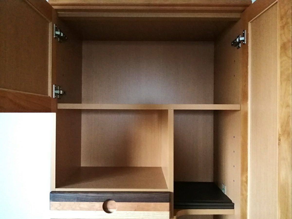 | 奥行の内寸が45cm以上ある食器棚。ヘルシオなど奥行があるスチームオーブンも置けるタイプです(オーブンレンジのサイズはご自身でご確認ください) | |