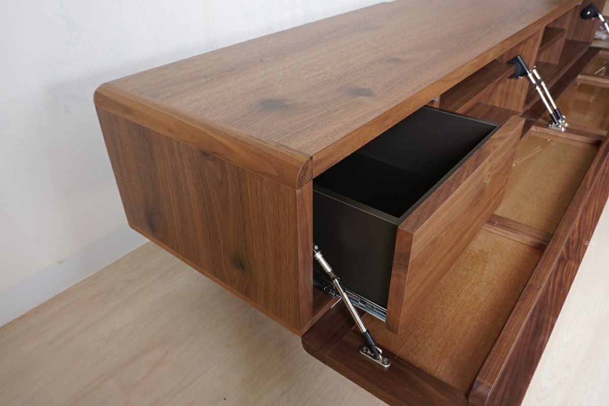 | テーブルの天板やキャビネットで裏側も化粧仕上げをし、背面が見えてもおかしくない商品。 | |