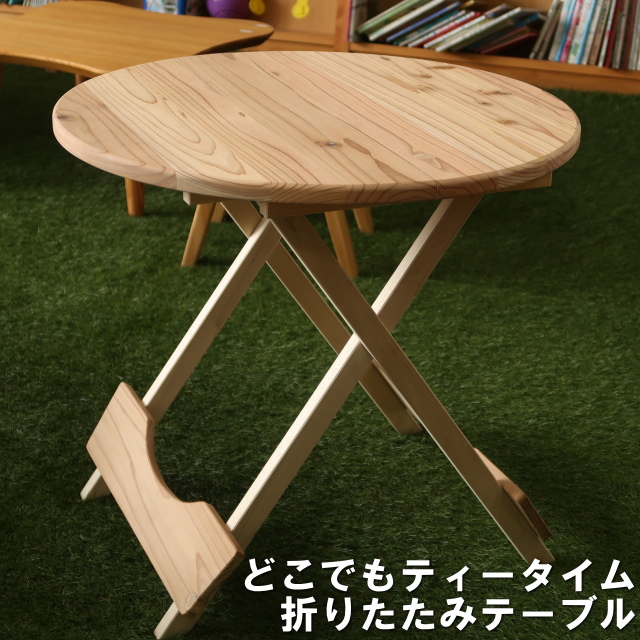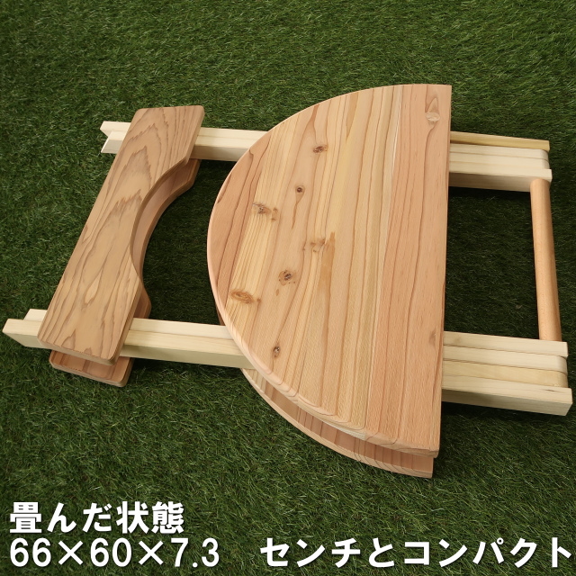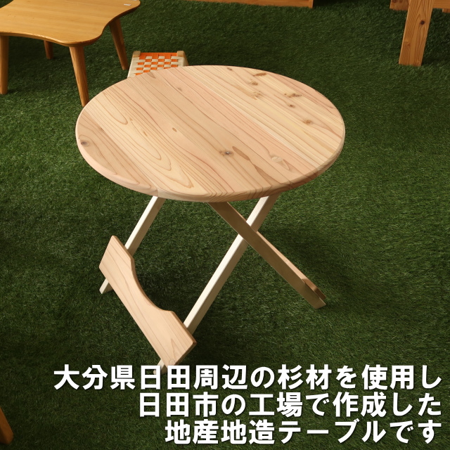 - アウトドア折りたたみテーブル直径60センチ円形国産杉無垢(玄関渡し配送)