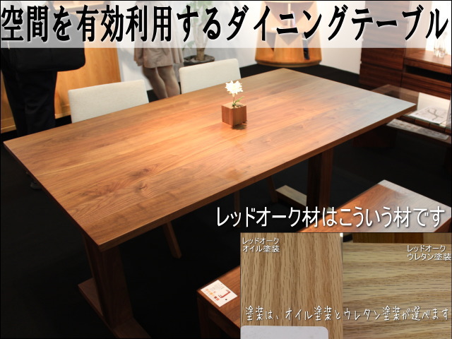 狭いスペースでも座りやすい2本脚のレッドオークダイニングテーブル