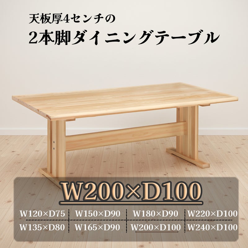 天板厚4センチの2本脚ダイニングテーブル 200×100