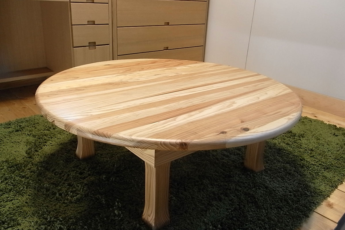 | 国内で伐採された木材を使用した家具。杉やヒノキが中心で、山林は適切な管理をしないと洪水や山崩れの原因となります。国産材を積極的に使うことにより山の管理が適切に行われるようになります。 | |