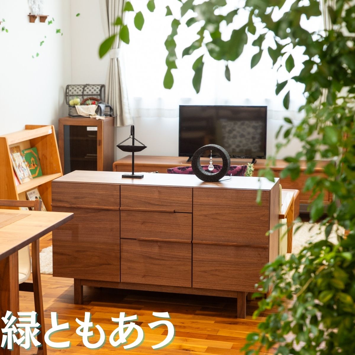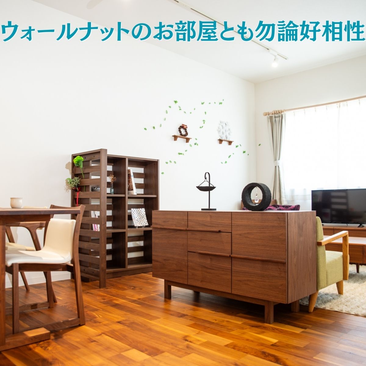 サイドボードの背面はプリント化粧合板なので、少し見えるくらいですと違和感ございません。