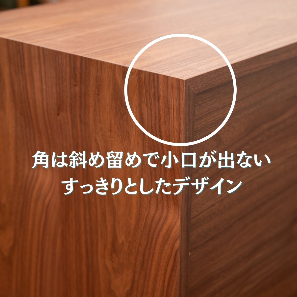 通常見える範囲(天板・前板・側面)はすべて天然木で制作しています。