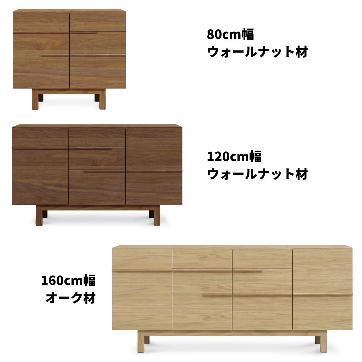 サイドボードでは取っ手部分を左右非対称にし違い棚をイメージしています。