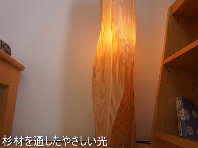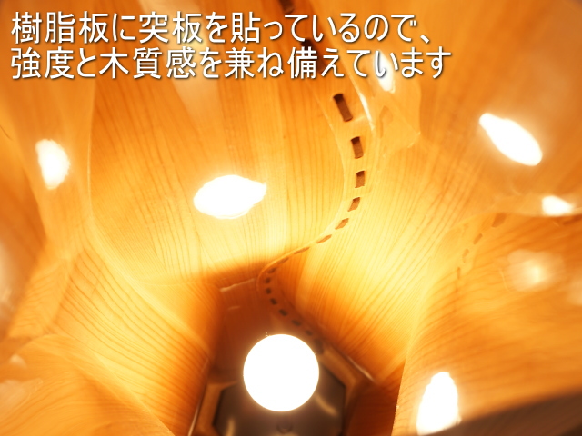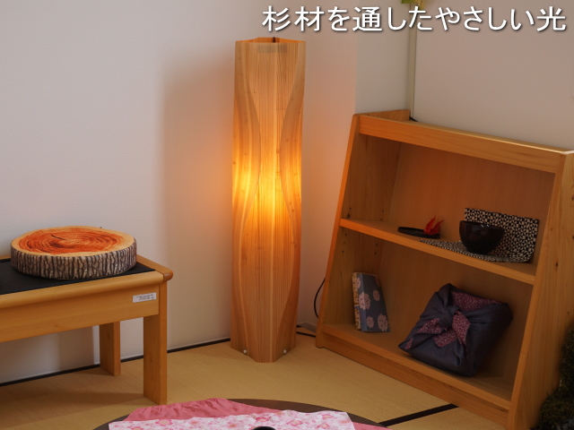 【直径23.9、高さ105.5】ツイスティ国産杉天然木つき板照明(ランプ付き)