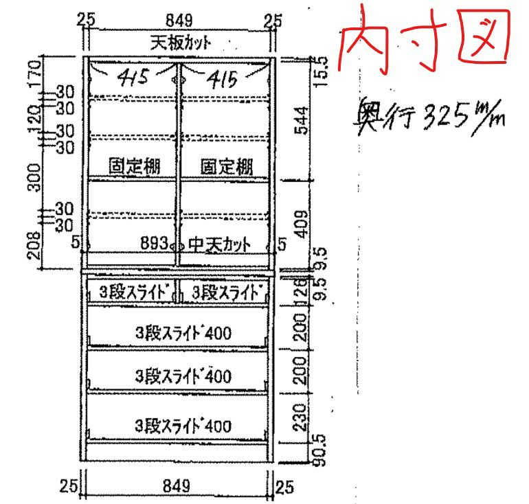 | 奥行の内寸が45cm以上ある食器棚。ヘルシオなど奥行があるスチームオーブンも置けるタイプです(オーブンレンジのサイズはご自身でご確認ください) | |