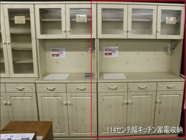 76家電収納、114家電収納の上戸内は3段階で高さ調整できる可動棚付きです。