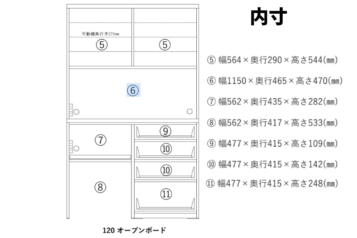 120cm食器棚には、ゴミ箱を置くスペースを空けています。