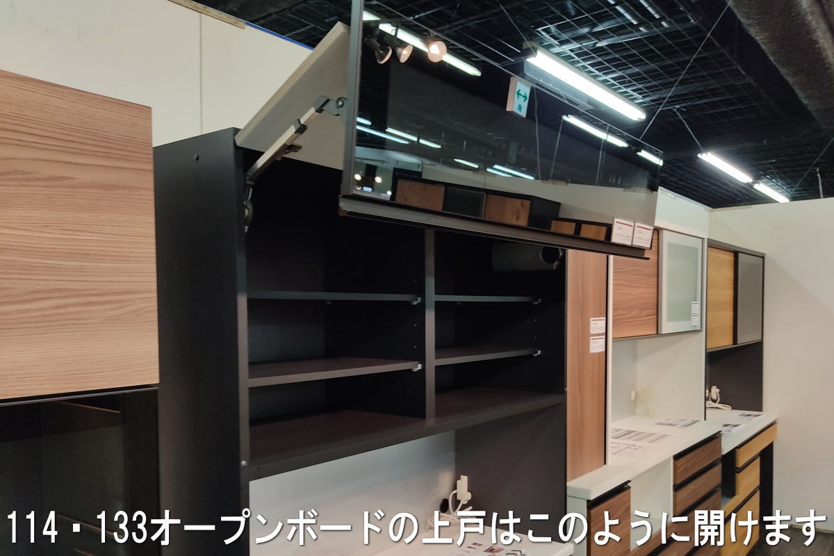 折れ戸で狭いスペースにおける114センチ幅キッチンボードスコール