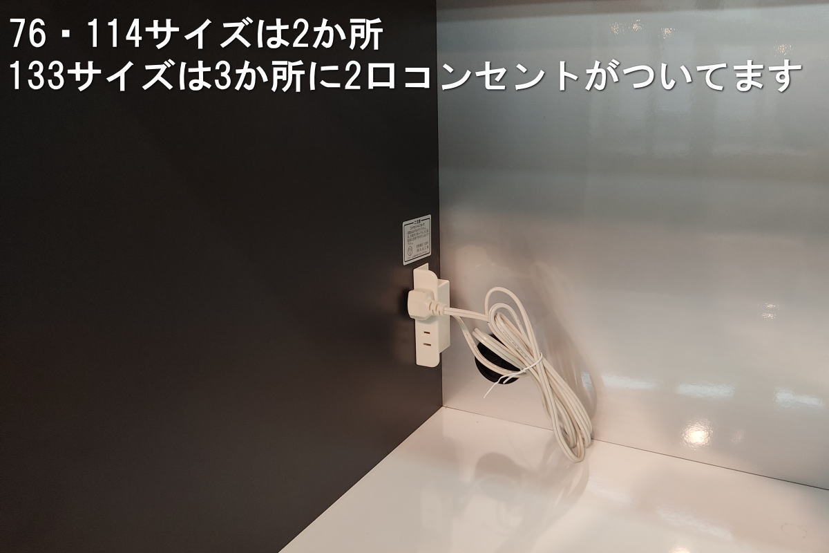2口コンセントがついてます。詳細は各商品ページにある図面でご確認ください。