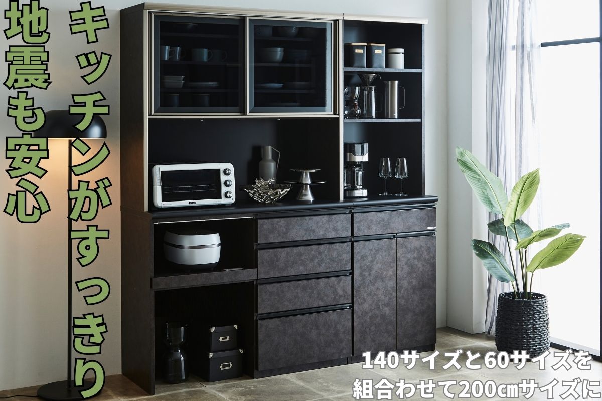 ゴミ箱収納できる地震でも安心な大型200cm幅キッチン収納
