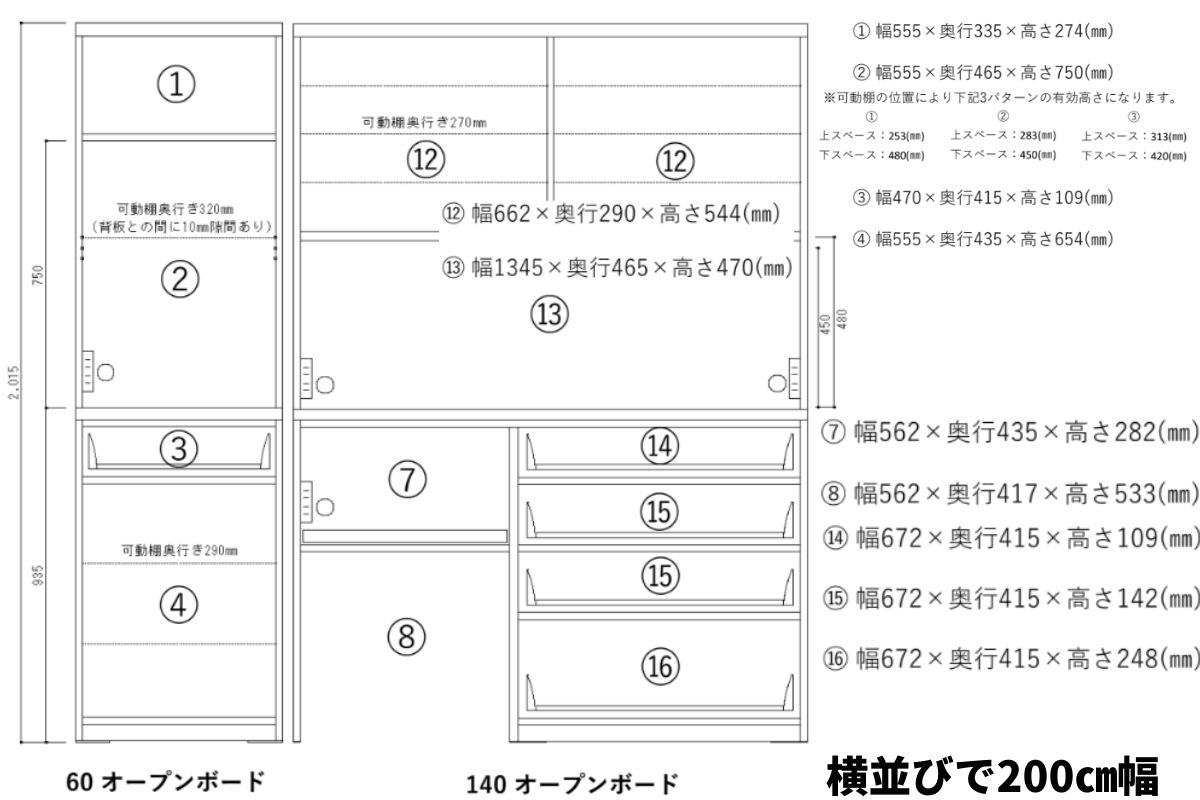 この食器棚は上置きを高さオーダーで追加できます。