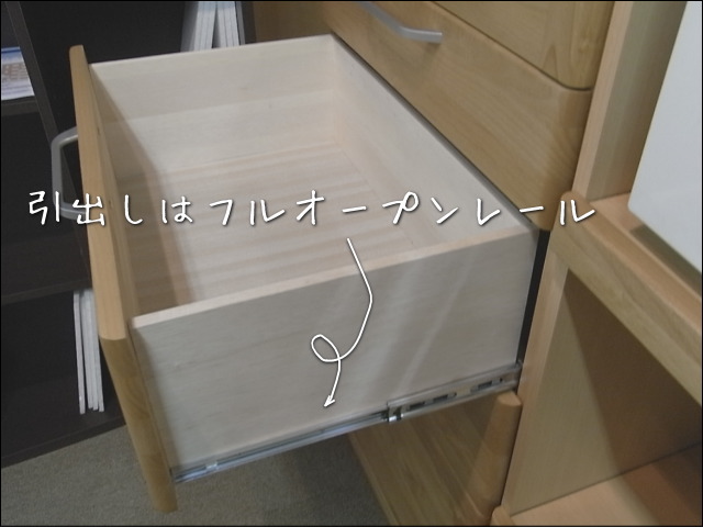 引出しはフルオープンレールが付いていますので、
