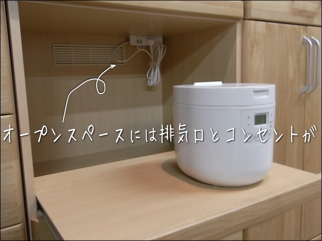 天板にはコンセントも付いていて、電子レンジやコーヒーメーカーなど