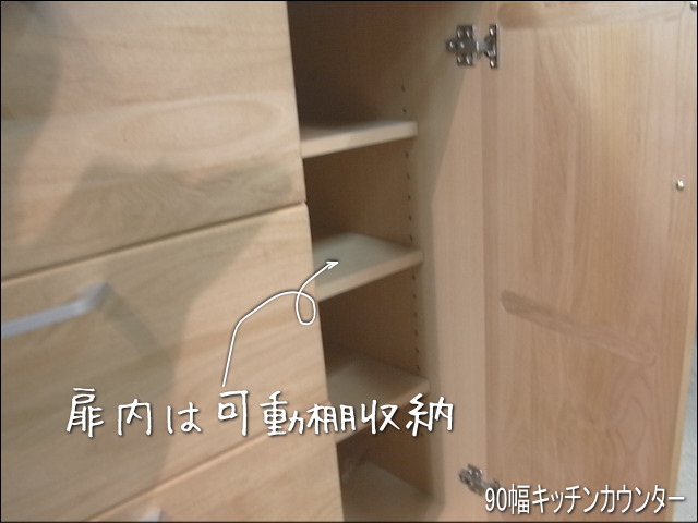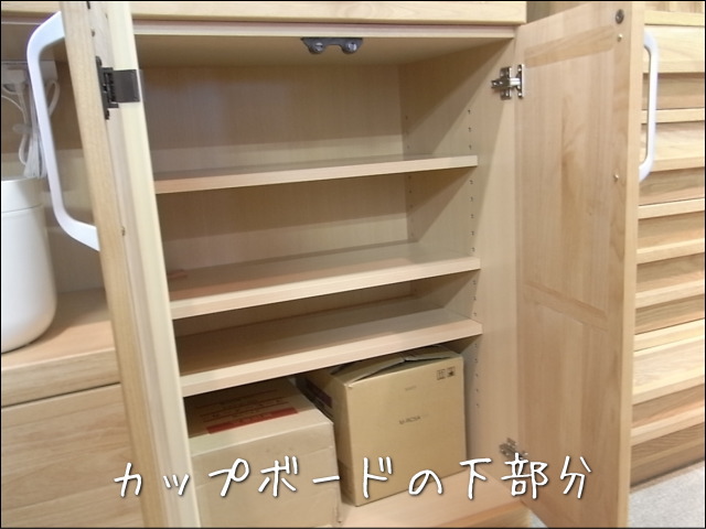 カップボードの下は、3段の可動棚が付いています。