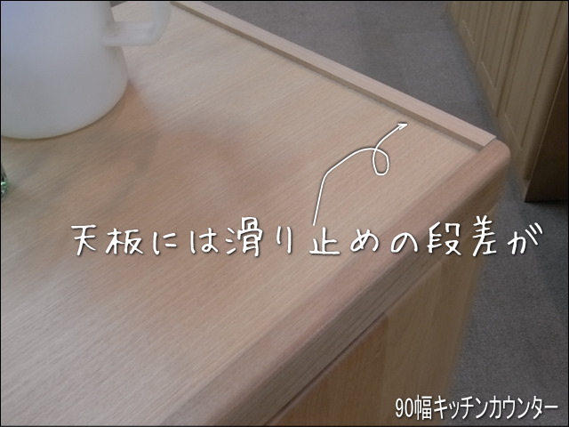 Kitchen_counter天板の端には、丸いもの(箸や卵など)が滑り落ちないように、