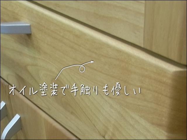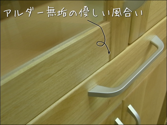 前板はアルダー無垢材を使用し、優しい風合いになっています。