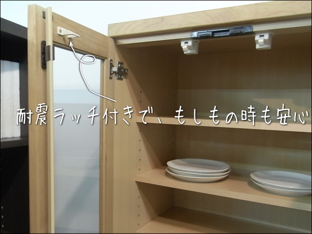 上部の開き戸には耐震ラッチを付けています。