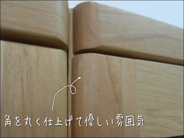 角を丸くすることで、小さいお子様などが強く当たっても角があるより痛くないようにしています。