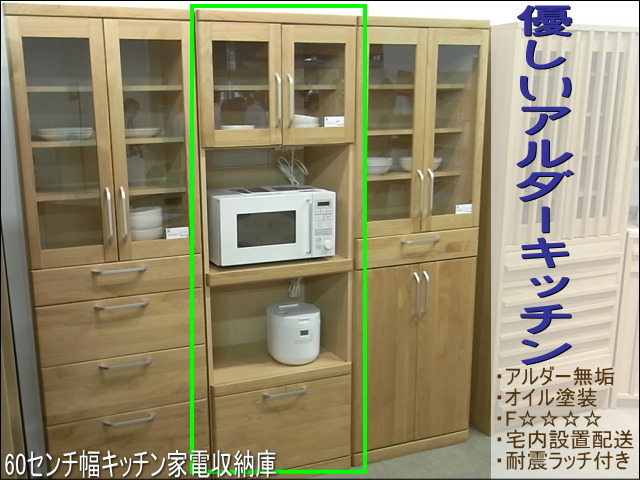 アルダー天然木60センチ幅家電収納レンジボード地震対策ラッチ扉 アール