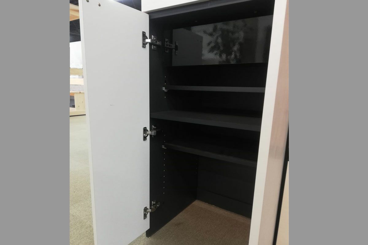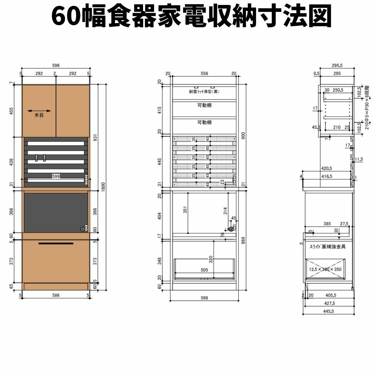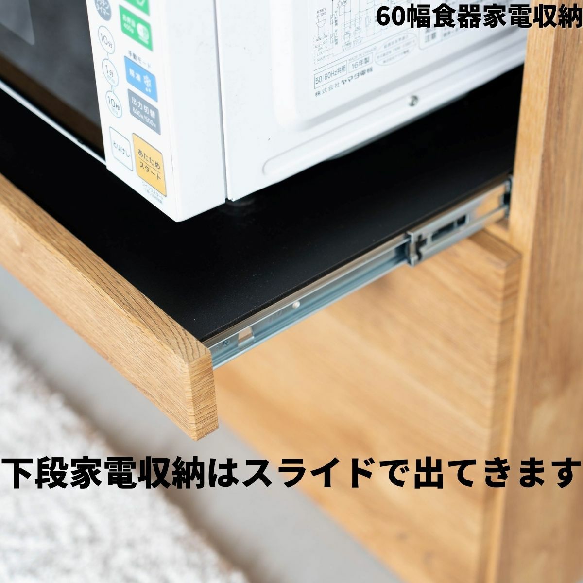 | 奥行の内寸が45cm以上ある食器棚。ヘルシオなど奥行があるスチームオーブンも置けるタイプです(オーブンレンジのサイズはご自身でご確認ください) | |