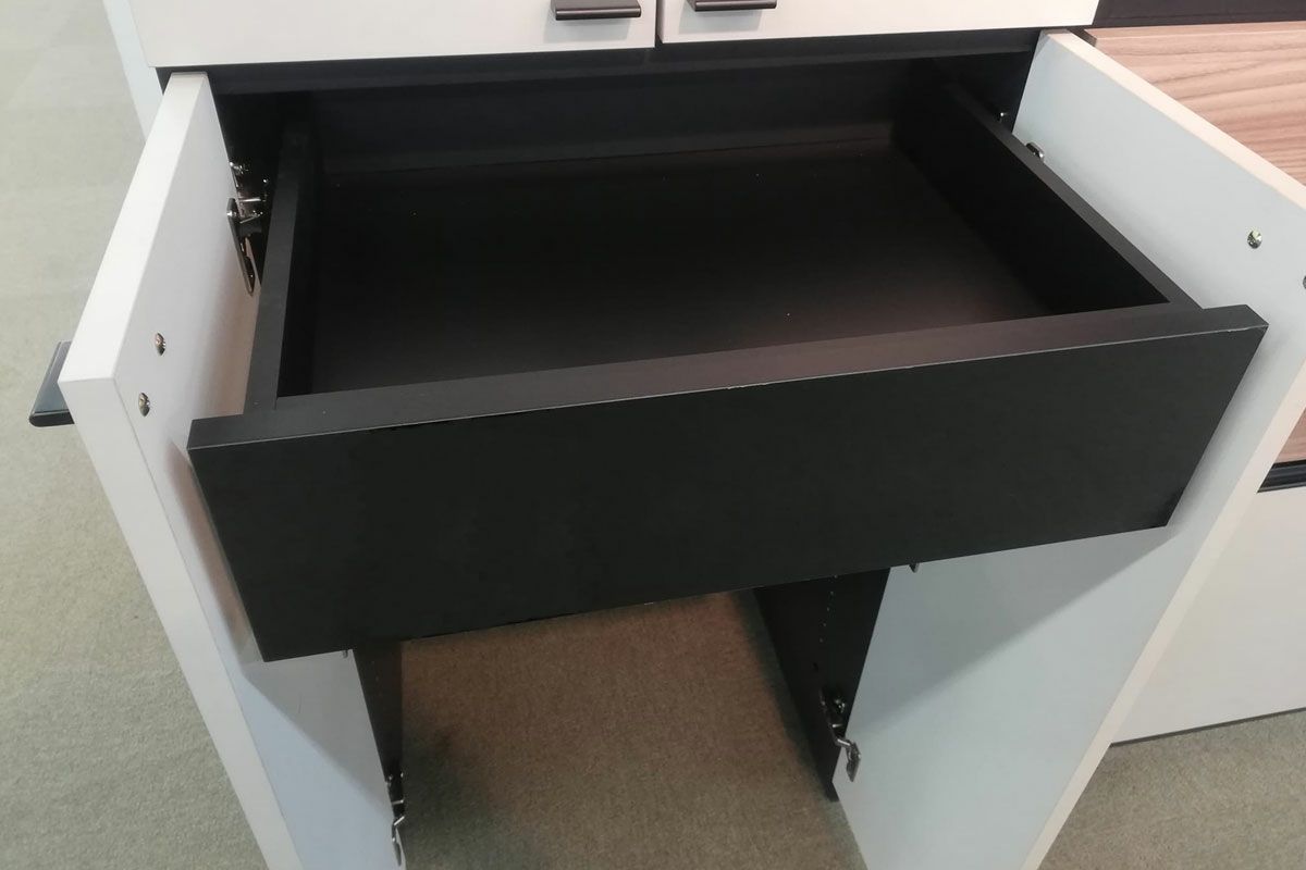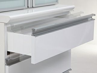 | テーブルの天板やキャビネットで裏側も化粧仕上げをし、背面が見えてもおかしくない商品。 | |