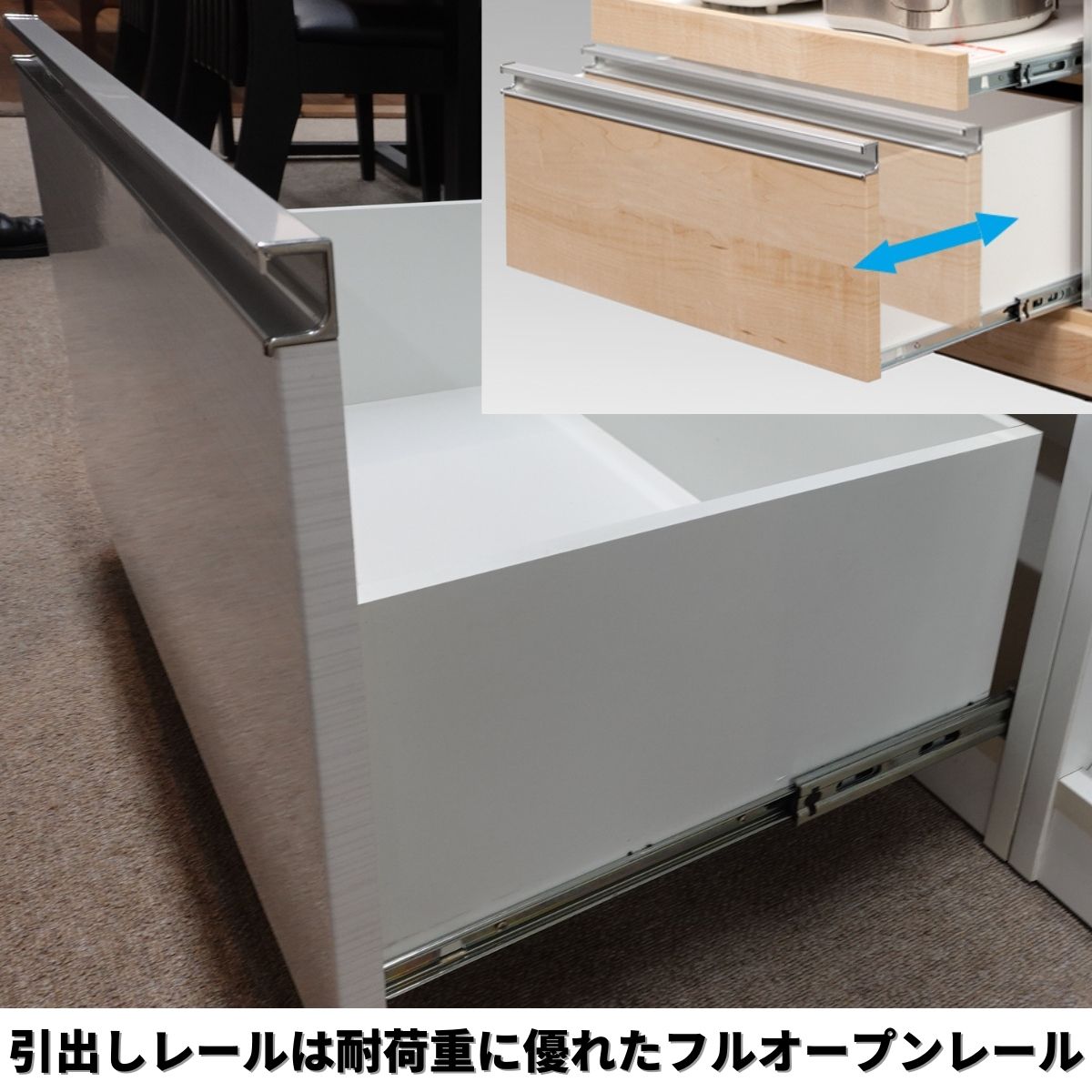 ・引出しレールは耐荷重に優れたフルオープンレール