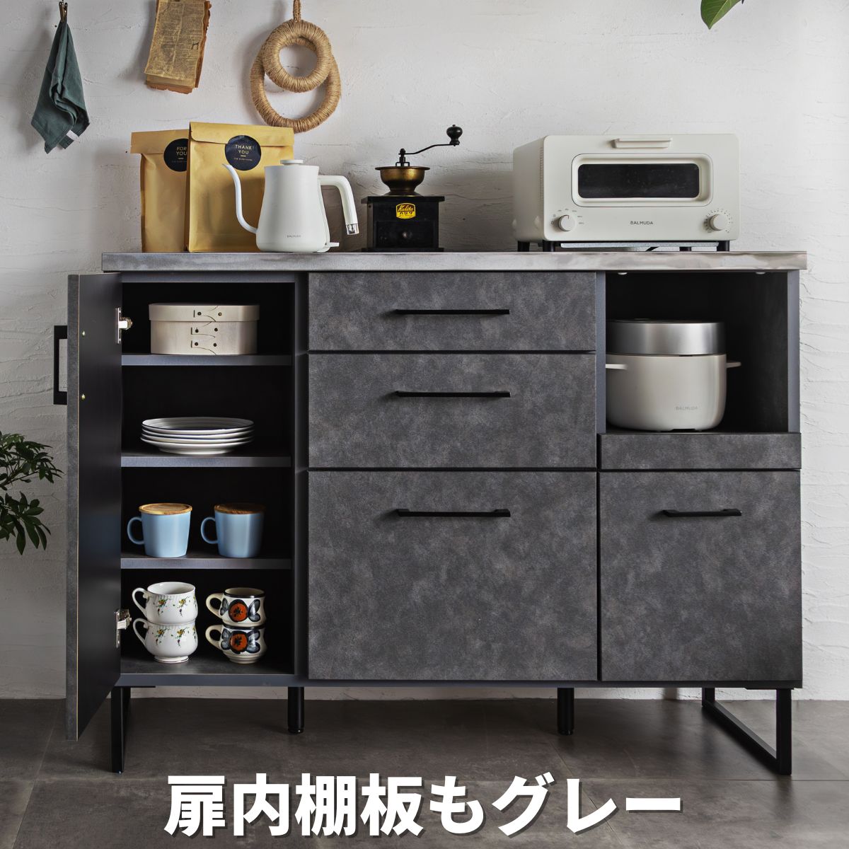 前面・側面は最近人気のグレー色で石目調の柄が入ってます。グレーはシンプルな色なので、飽きが来にくく、他のアイテムを変えるだけで模様替えができます。また、組み合わせの幅が広く、丈夫な国内工場組立により長く使えると思います。