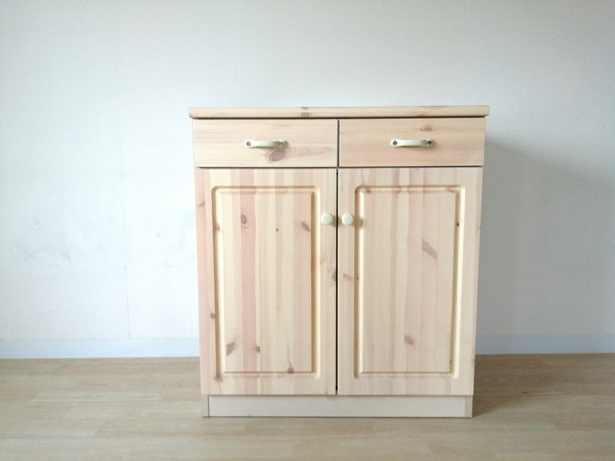 - 【幅76 奥行45 高さ85】パイン無垢材エコル76センチ幅キッチンカウンター