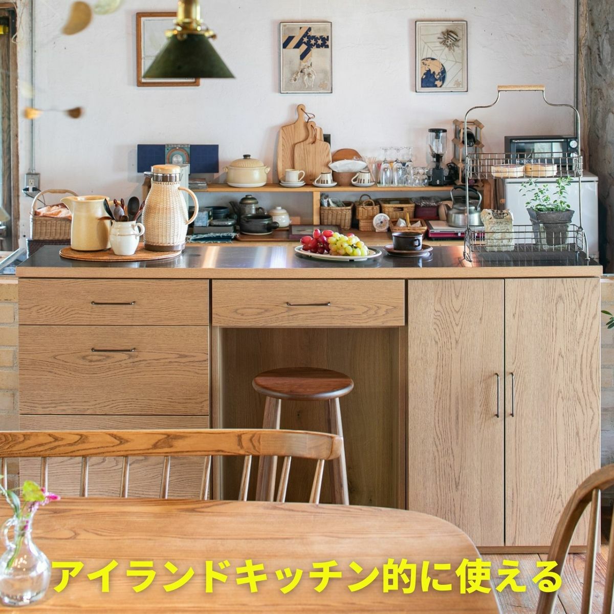 | テーブルの天板やキャビネットで裏側も化粧仕上げをし、背面が見えてもおかしくない商品。 | |