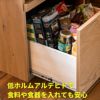 JIS・JAS基準の低ホルムアルデヒド素材で作られているので、食品や食器を安心して収納できます。