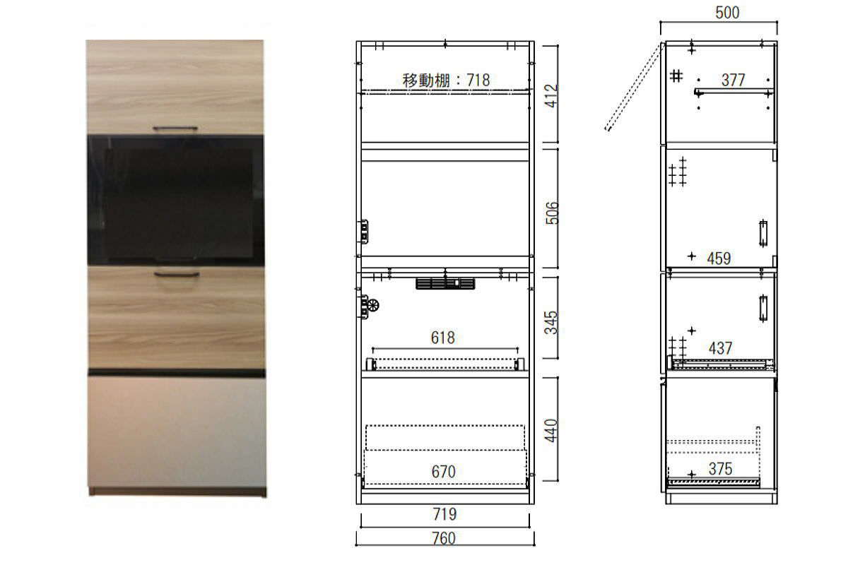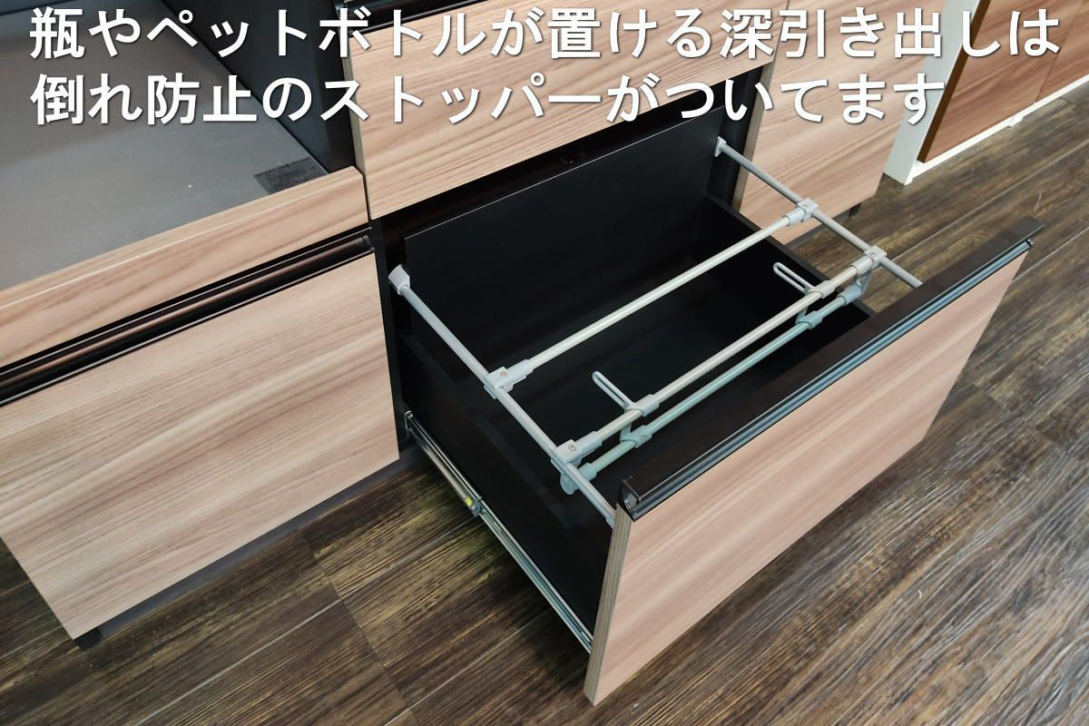 奥行の内寸が45cm以上ある食器棚。ヘルシオなど奥行があるスチームオーブンも置けるタイプです(オーブンレンジのサイズはご自身でご確認ください)